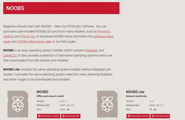 在官网下载NOOBS,选择完整版本“NOOBS”进行安装