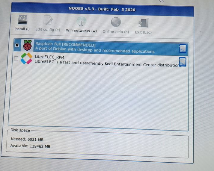 选择第一个“Raspbian Full”进行安装,等待安装完成